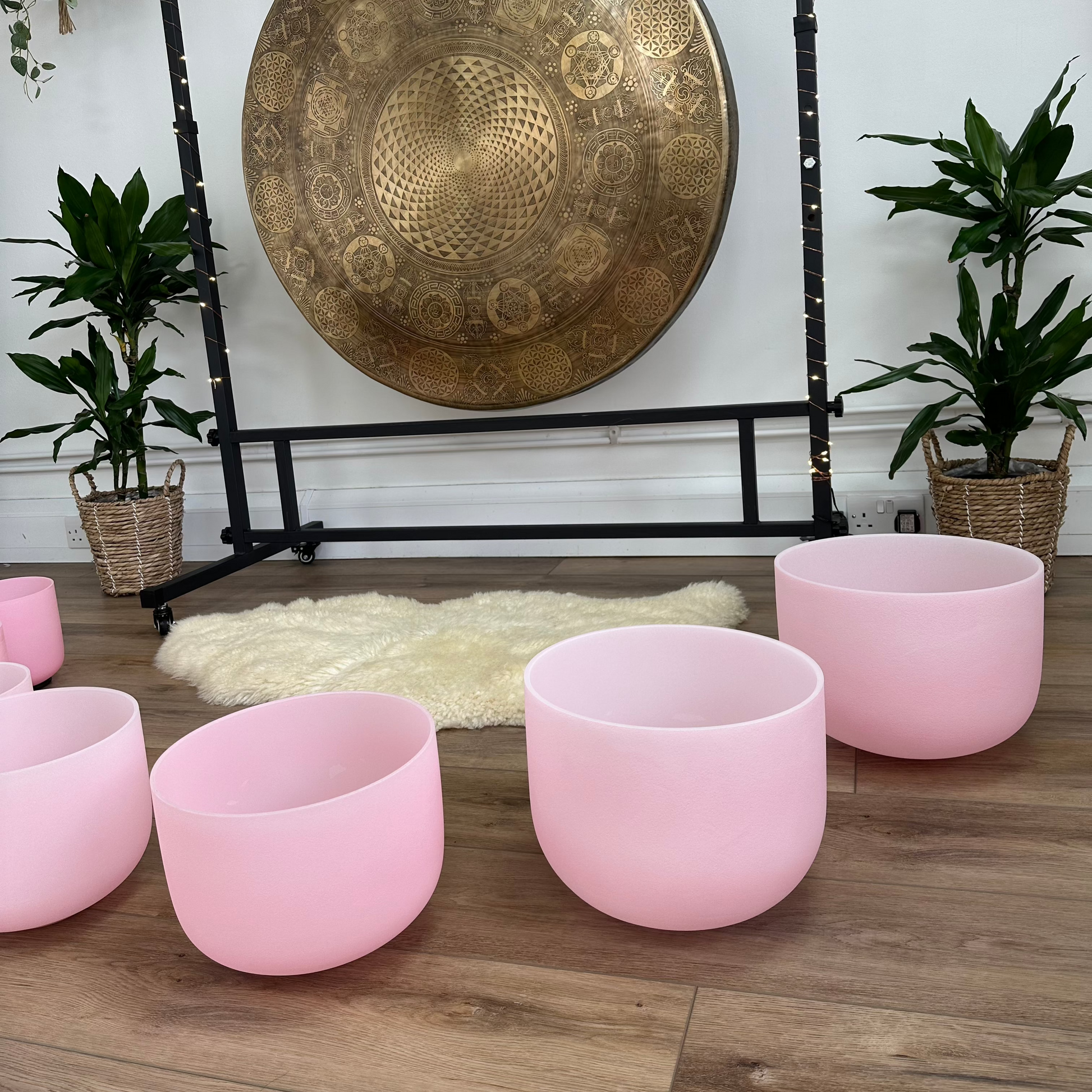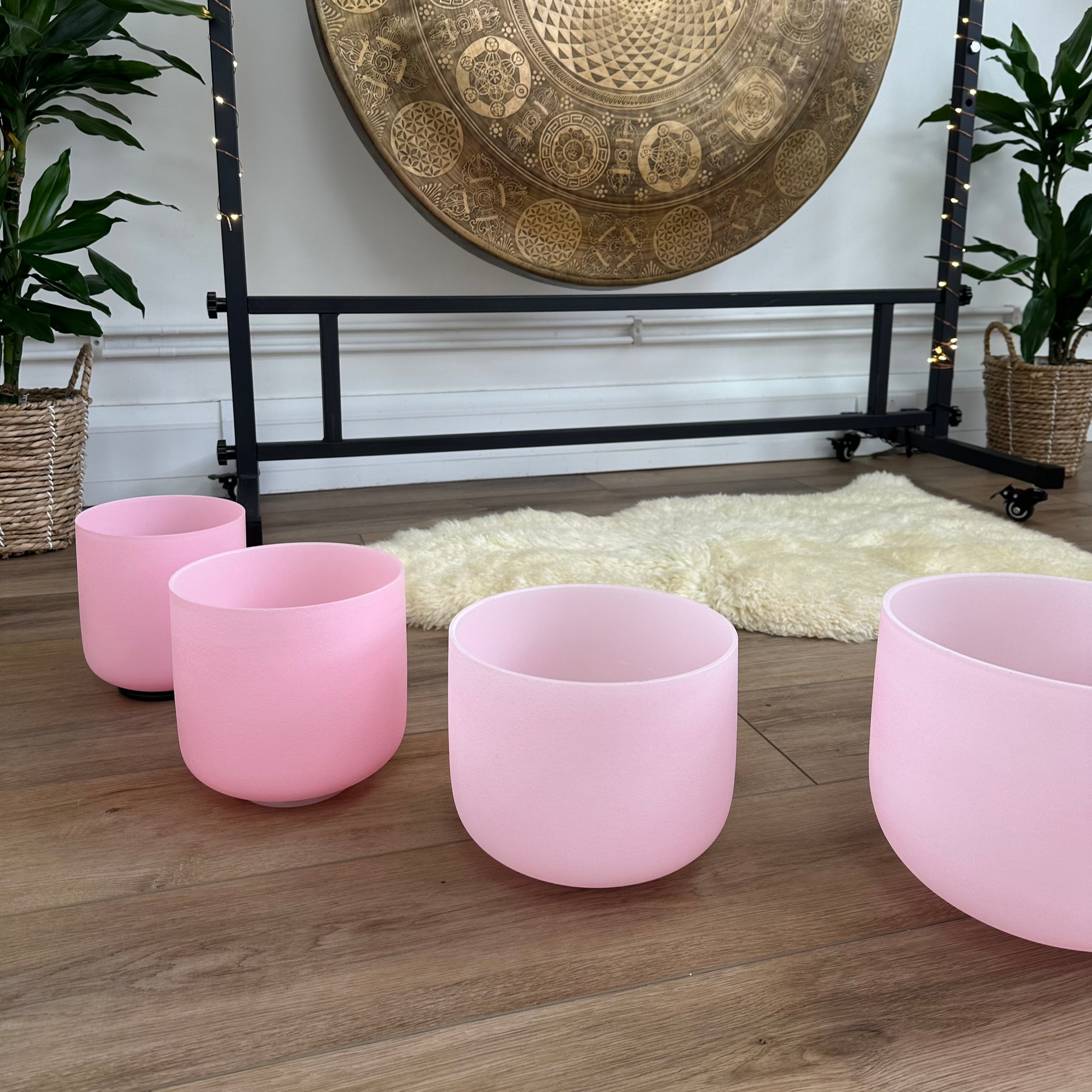 Light Pink Frosted Crystal Quartz Singing Bowl Set