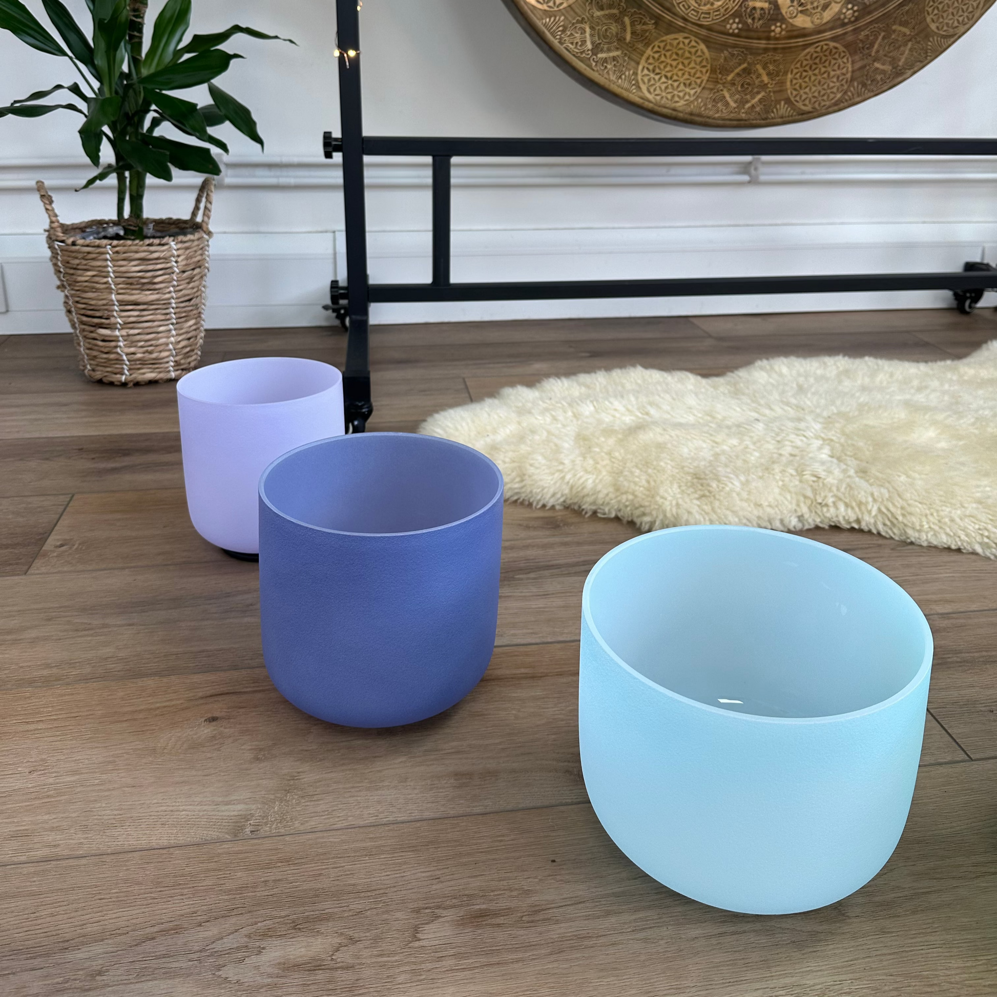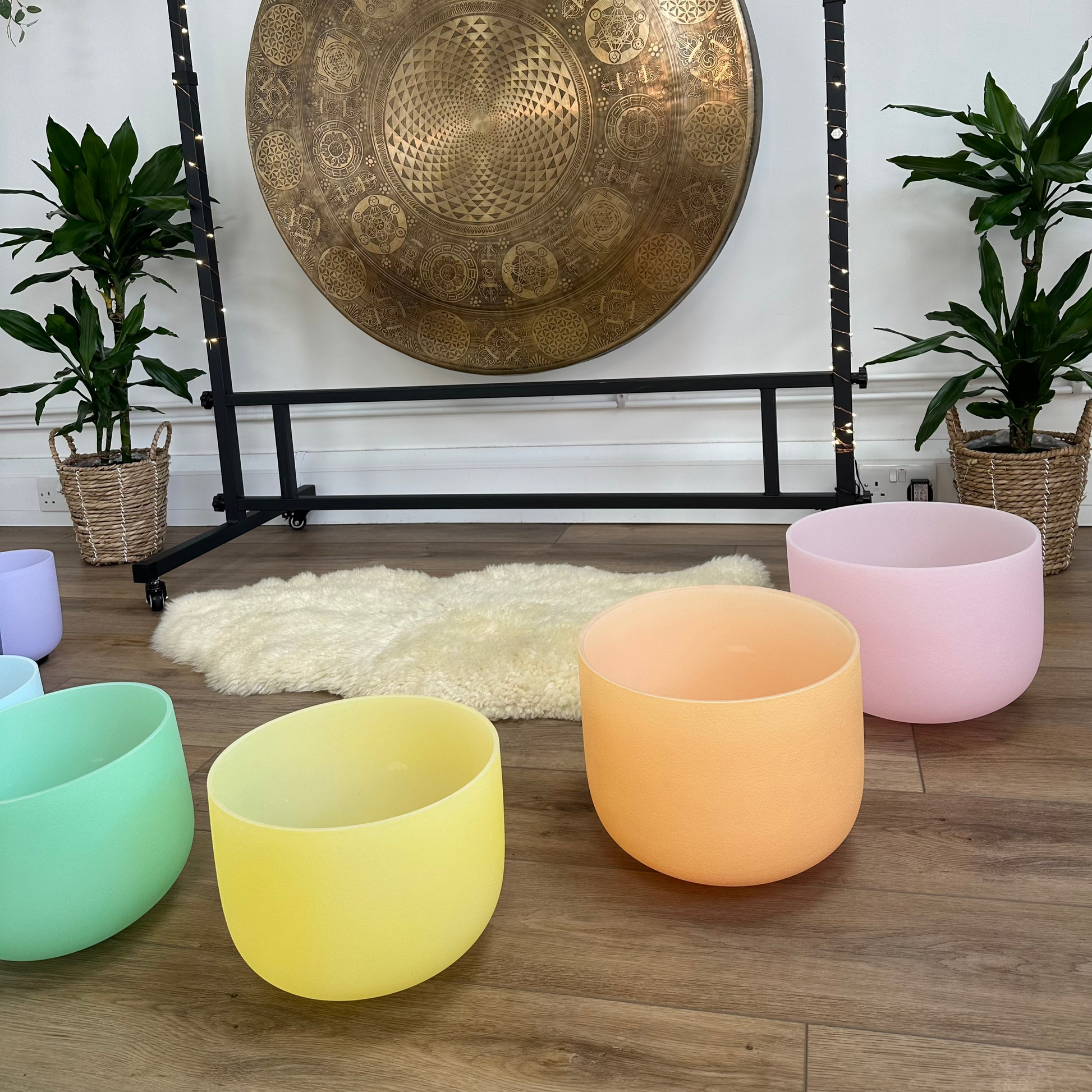 Pastel Chakra Colour Frosted Crystal Quartz Singing Bowl Set