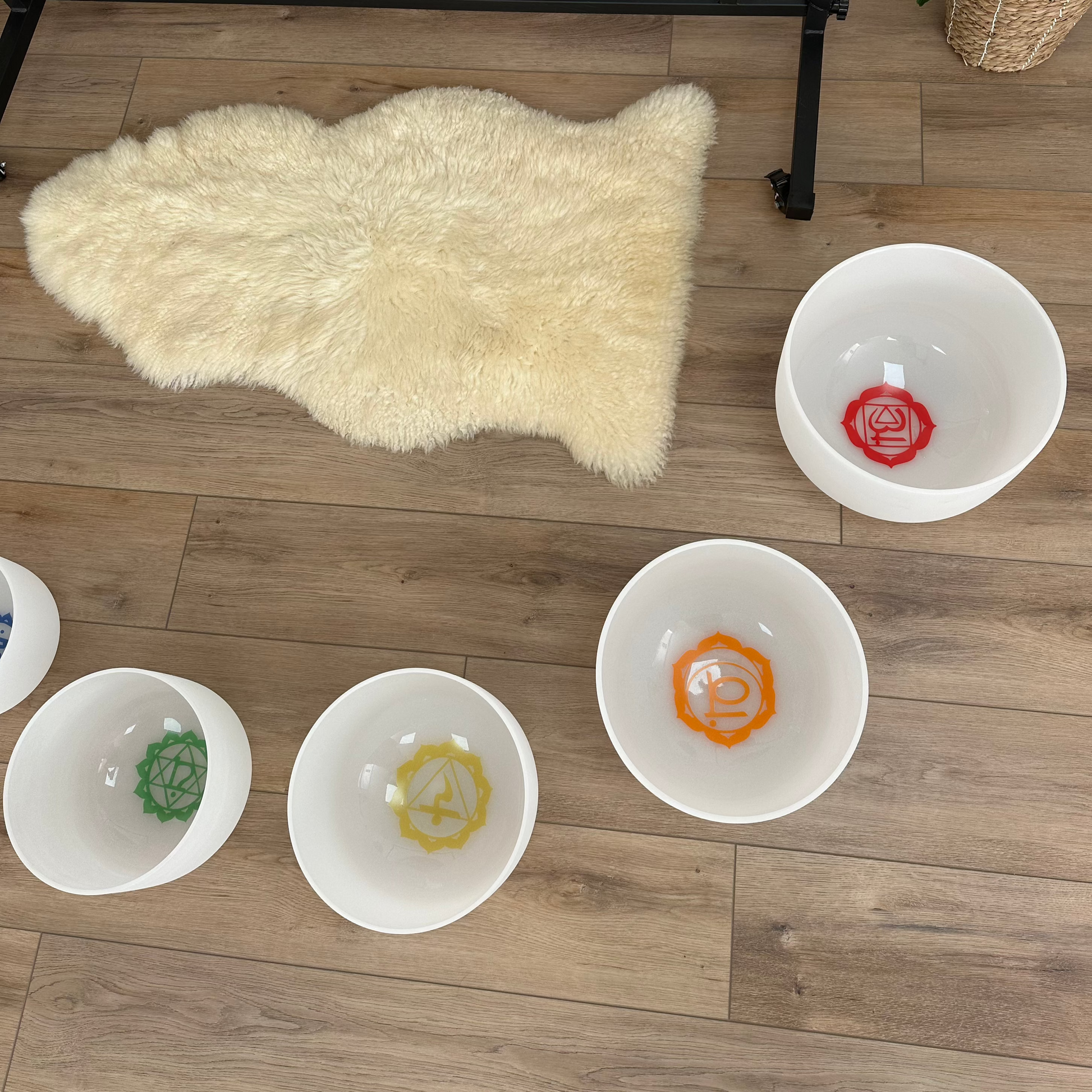 Chakra Design Crystal Quartz Frosted Singing Bowl Set