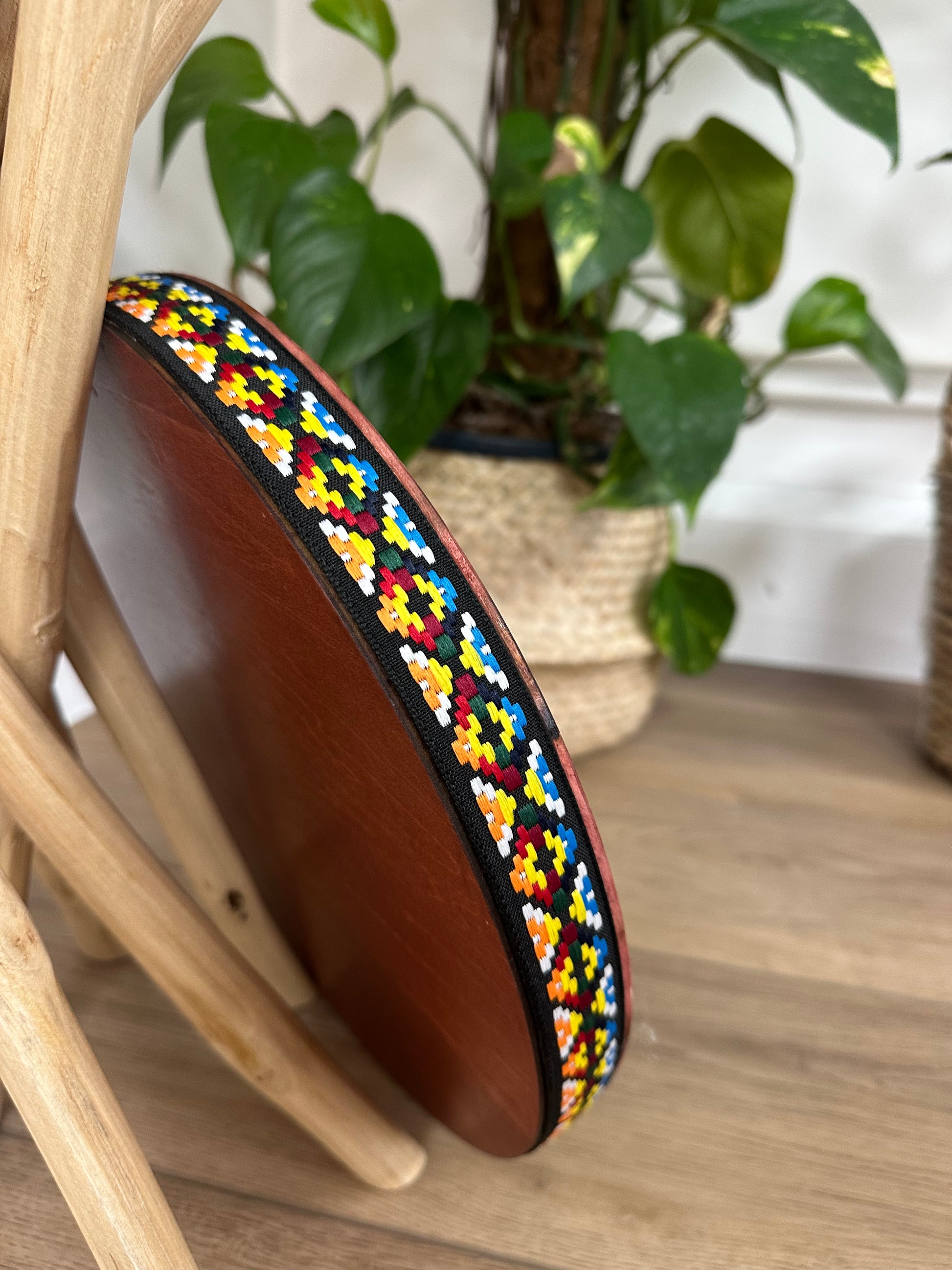 Ocean Drum in Authentic Birch Wood - 12 InchThis handcrafted ocean drum is made from high-quality birch wood and features an intricately carved design that enhances its visual and auditory appeal. The drum’s circular frame is adorned with a vibrant, multicolored woven trim, adding a touch of cultural elegance. Its unique design produces soothing ocean wave-like sounds when tilted, making it an excellent tool for sound healing, meditation, and relaxation. The sturdy construction ensures durability while maintaining a lightweight feel, perfect for practitioners and enthusiasts alike. Add this beautifully designed ocean drum to your collection to create a calming atmosphere during your sessions.