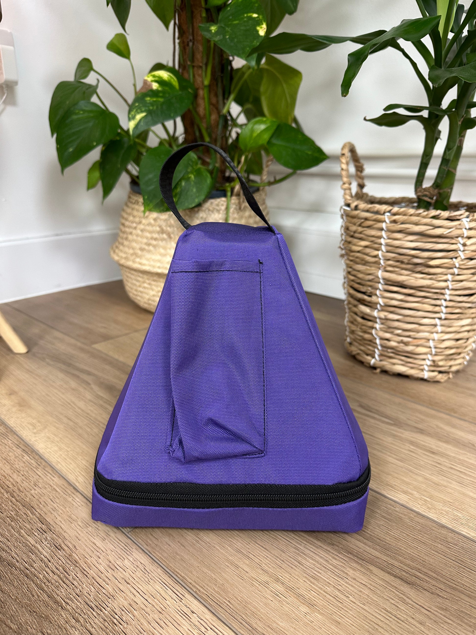 Introducing our purple carry case, designed specifically for a single crystal singing pyramid from 5-6 inches. With protective foam inside, this durable case ensures your crystal pyramid stays secure and cushioned during transport and storage, preserving its pristine condition and resonant sound wherever you go.