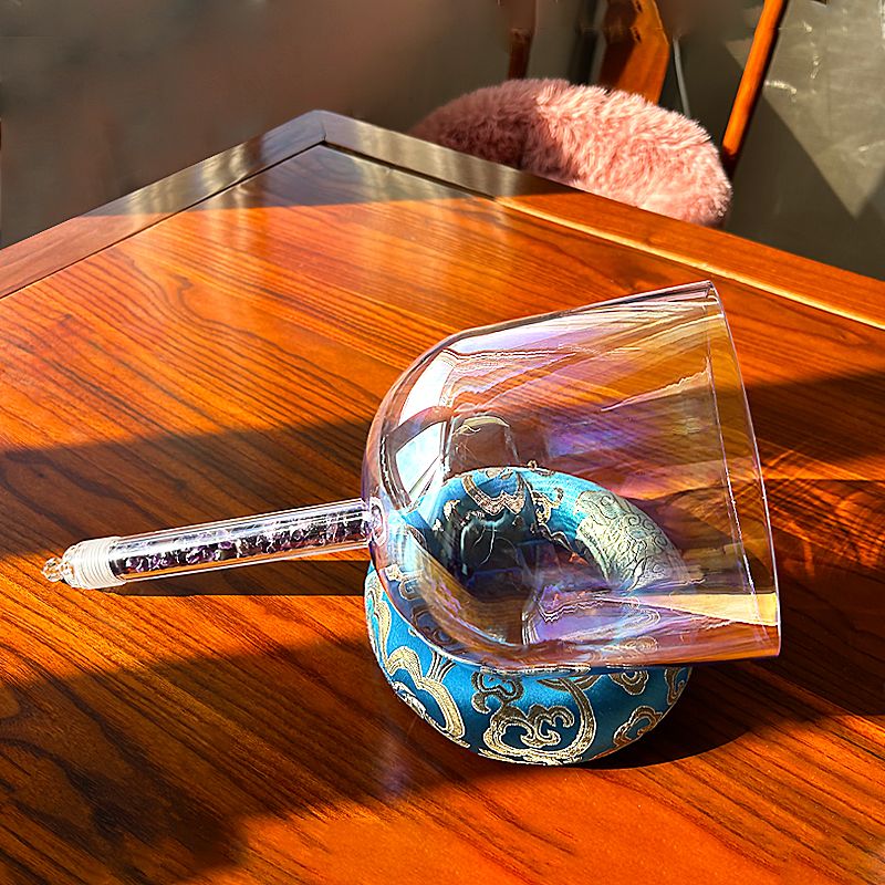 Our 8.4” Third Eye Alchemy Bowl is infused with amethyst crystals and tuned to 432Hz, the natural frequency of the universe. Designed to activate the third eye chakra, this bowl promotes intuition, clarity, and deep meditation.